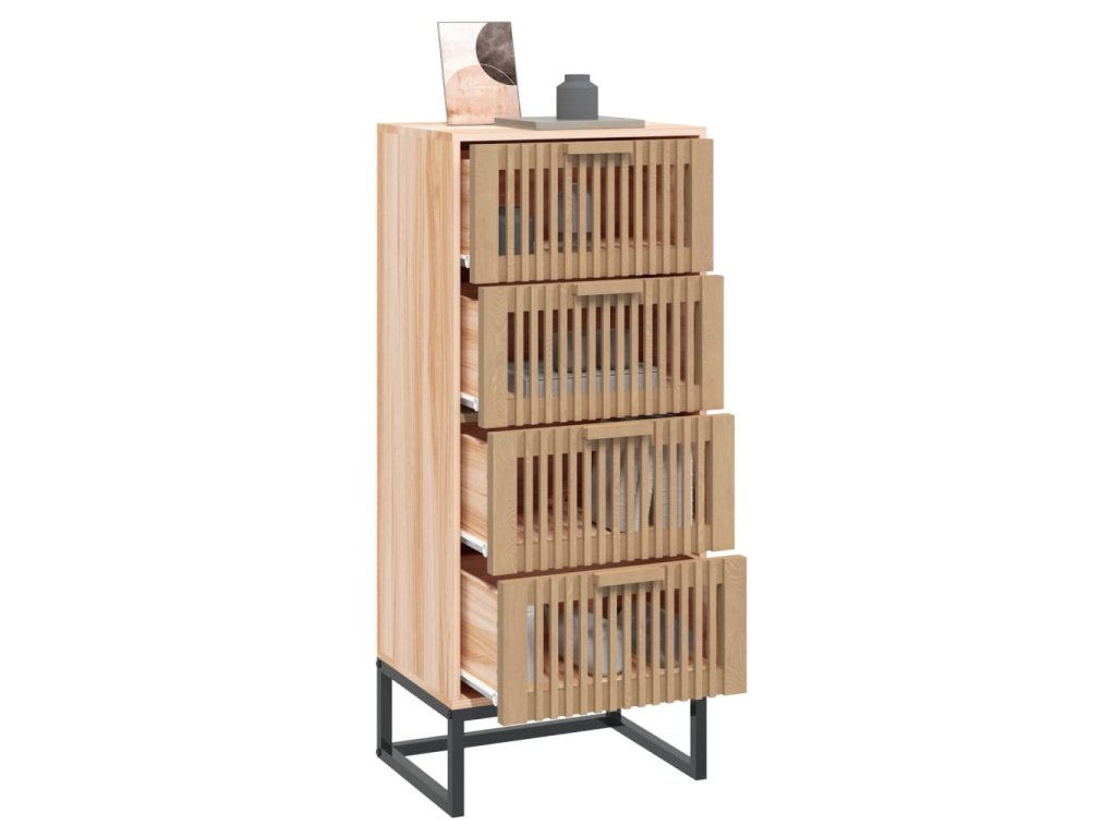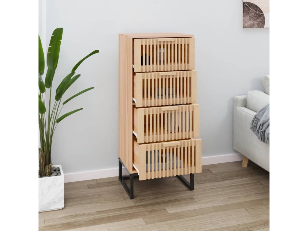 - Praktické dvierka: Táto skrinka má drevené zásuvky, ktoré ochránia vaše veci pred prachom a nečistotami.
