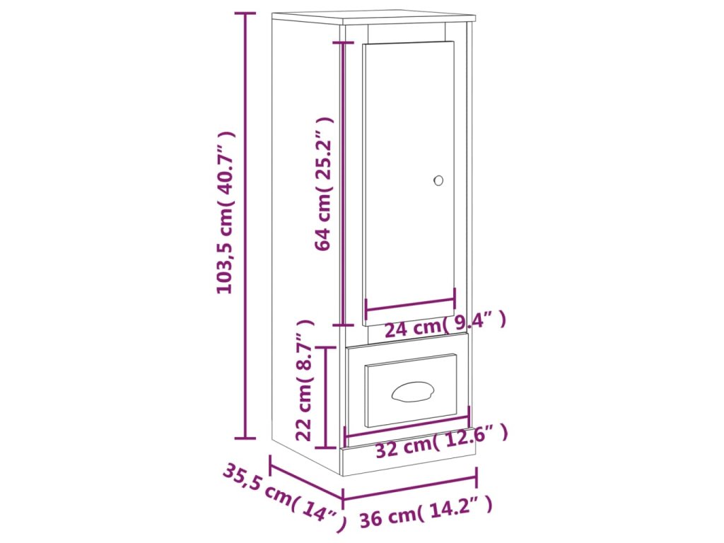 - Rozmery: 36 x 35,5 x 103,5 cm (D x Š x V)