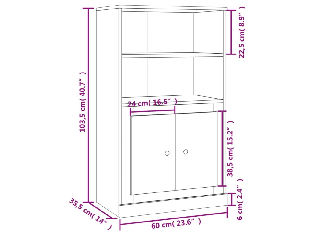 - Rozmery: 60 x 35,5 x 103,5 cm (D x Š x V)