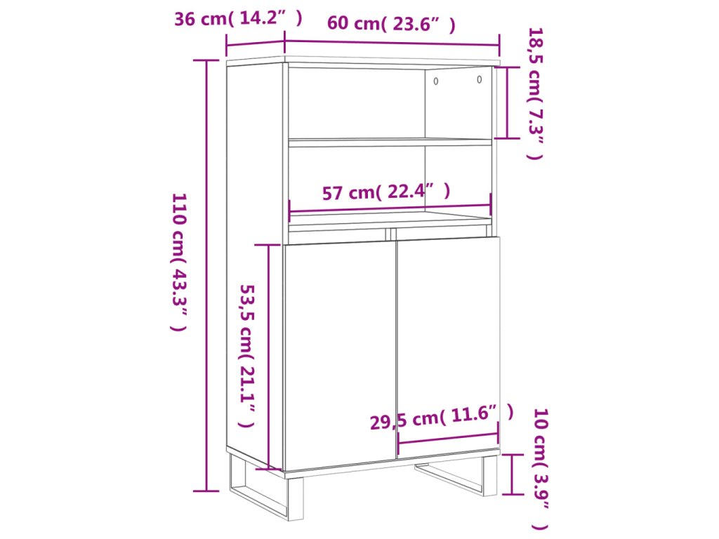 vidaXL Vysoká skrinka dub sonoma 60x36x110 cm spracované drevo