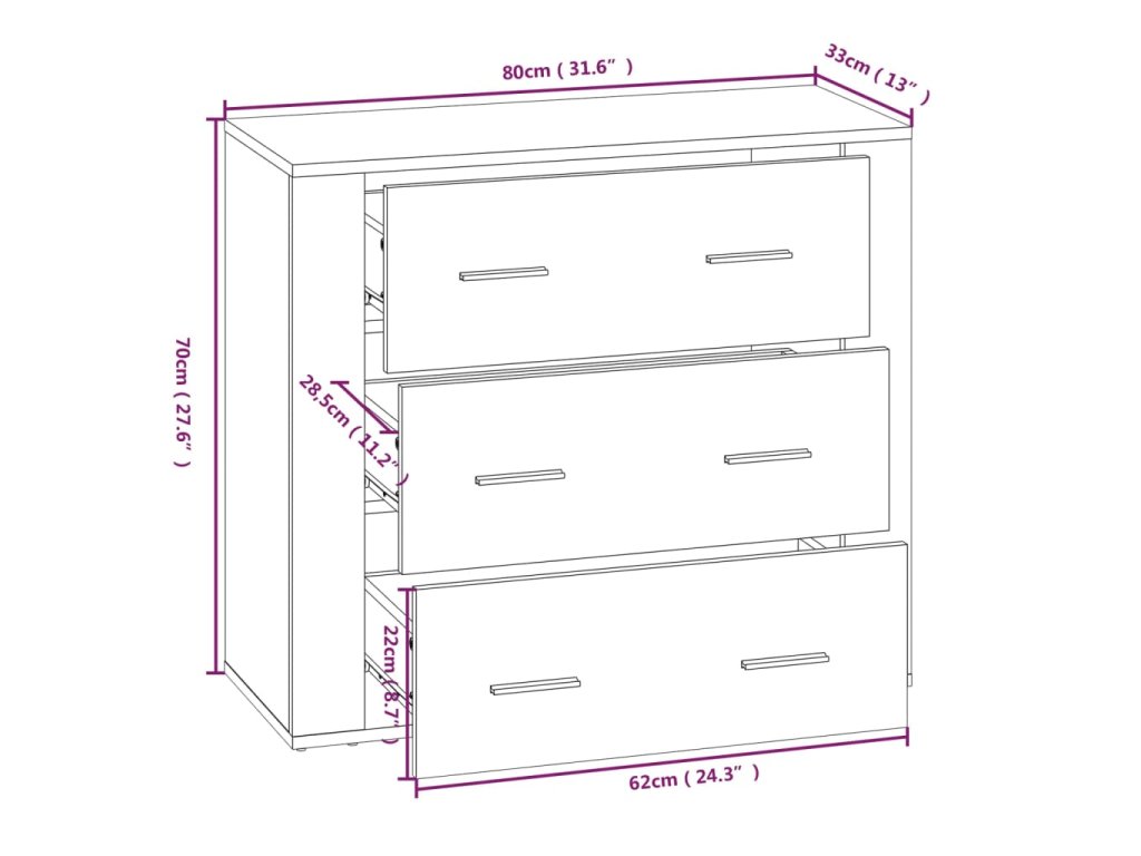 - Rozmery príborníka: 80 x 33 x 70 cm (D x Š x V)
