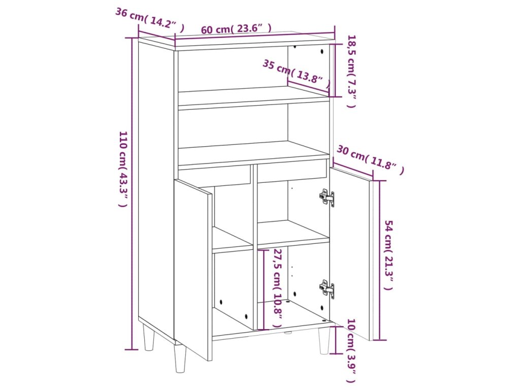 vidaXL Vysoká skrinka dymový dub 60x36x110 cm spracované drevo