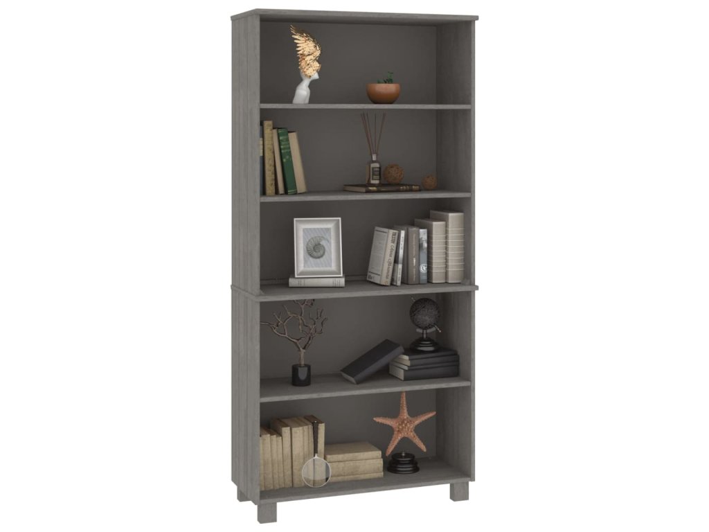vidaXL Vysoká skrinka HAMAR, borovicový masív, svetlosivá