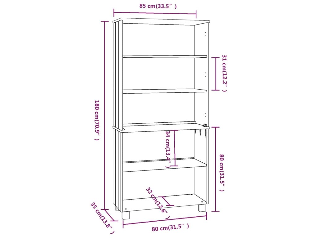 - Celkové rozmery: 85 x 35 x 180 cm (Š x H x V)