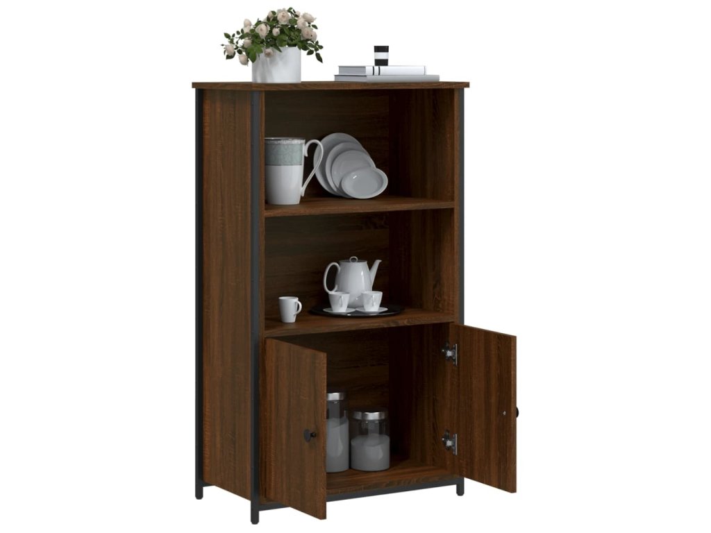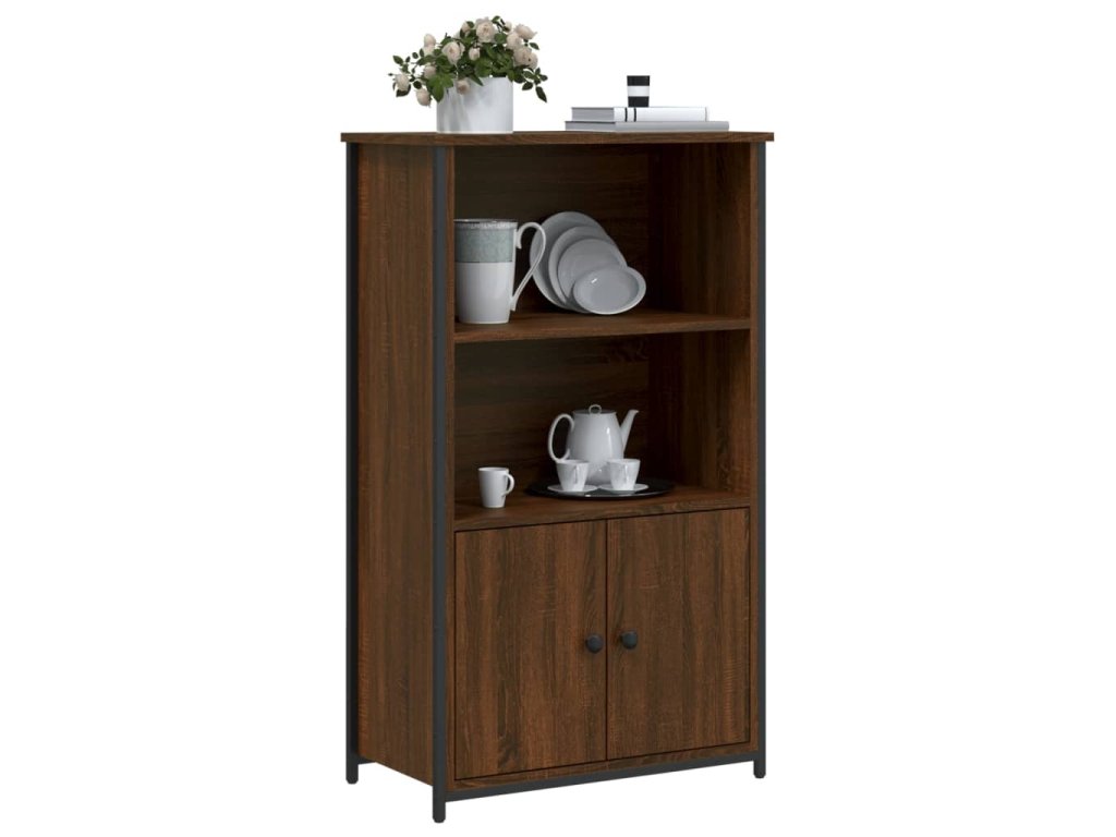 - Odolný a robustný materiál: Kompozitné drevo je výnimočne kvalitné, má hladký povrch a vyznačuje sa pevnosťou, stabilitou a odolnosťou voči vlhkosti. A kovový rám príborníka zaisťuje pevnosť a stabilitu.