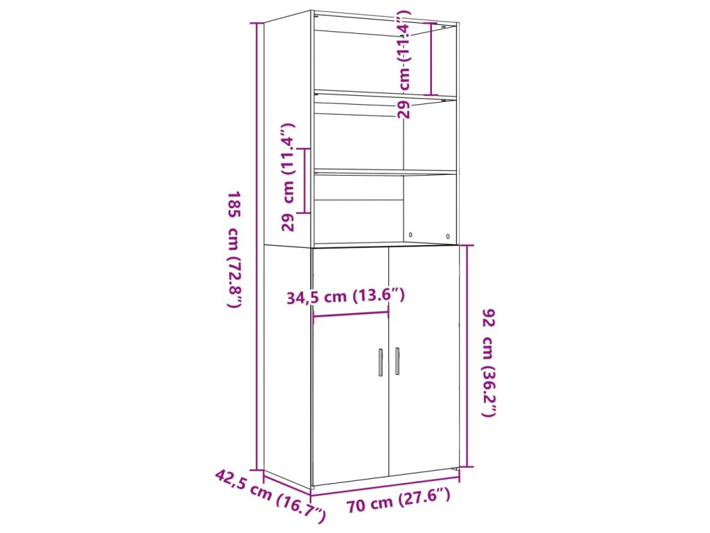 - Rozmery: 70 x 42,5 x 185 cm (D x Š x V)