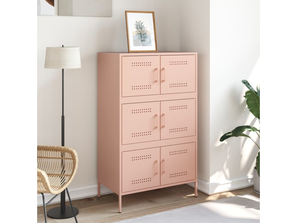 vidaXL Vysoká skrinka ružová 68x39x113 cm oceľ
