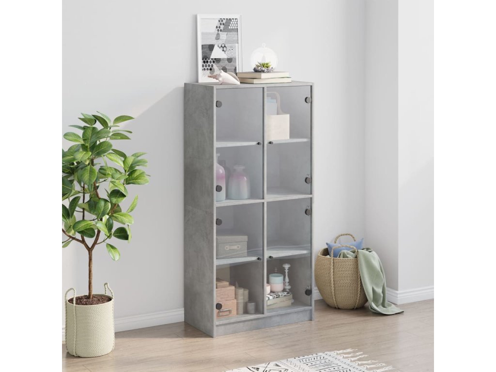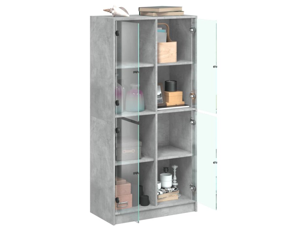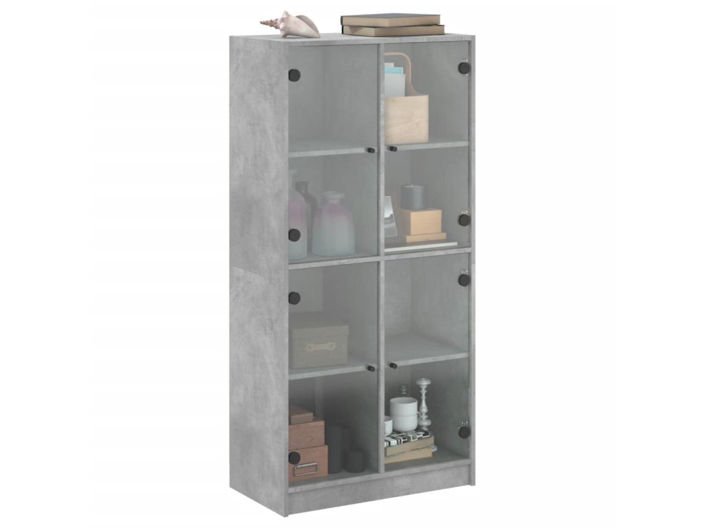 vidaXL Vysoká skrinka s dvierkami betónová 68x37x142 cm kompoz. drevo
