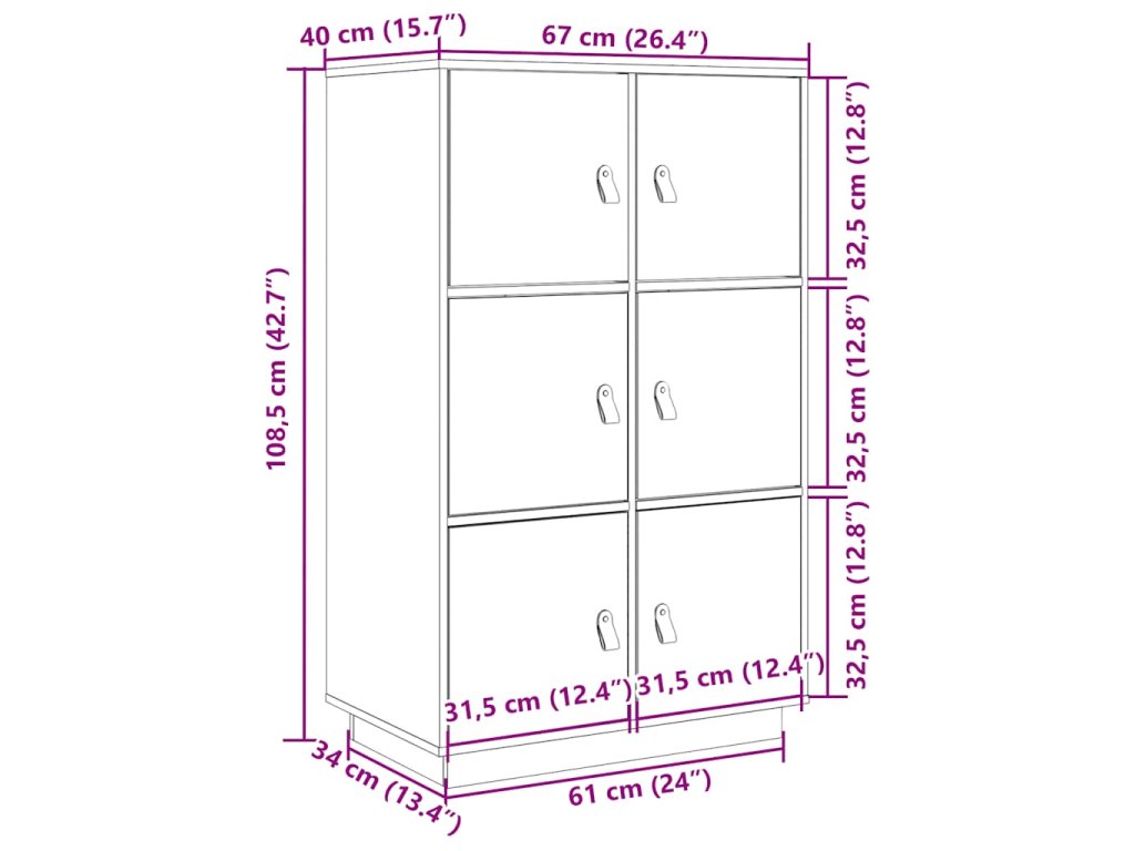 - Rozmery: 67 x 40 x 108,5 cm (Š x H x V)