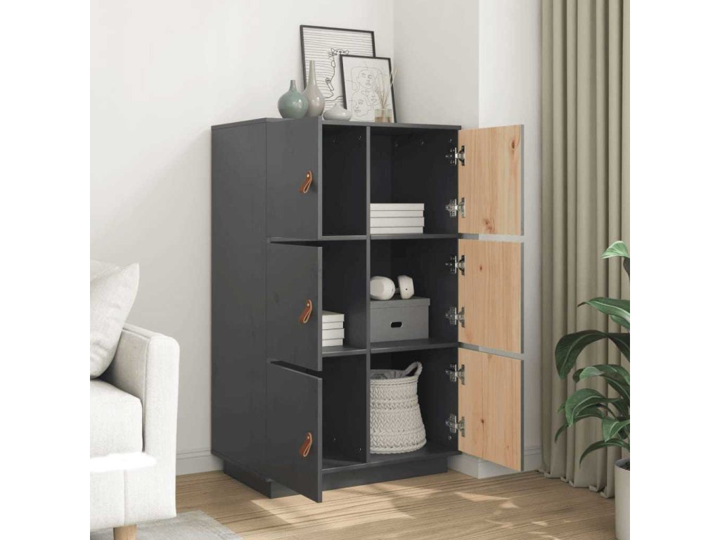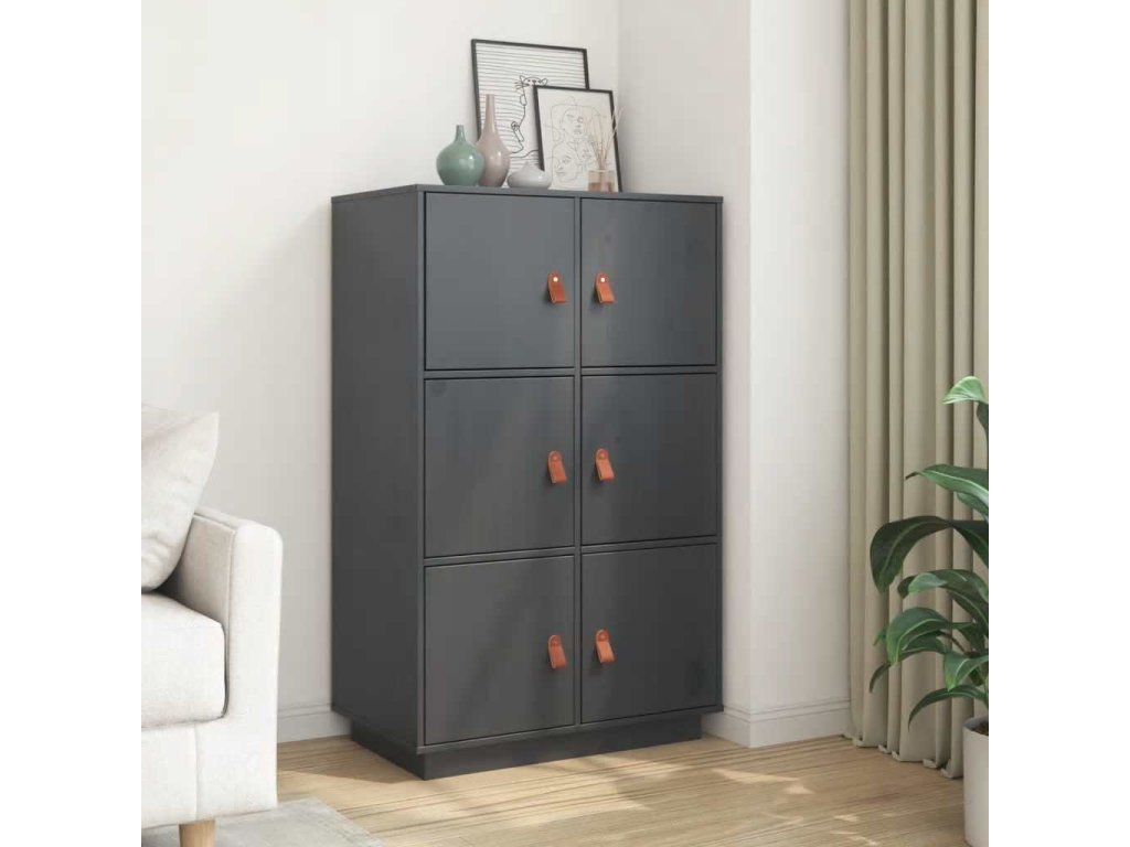 vidaXL Vysoká skrinka sivá 67x40x108,5 cm masívna borovica