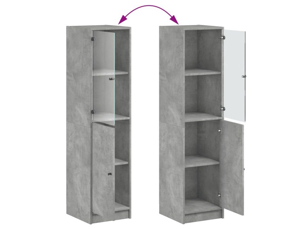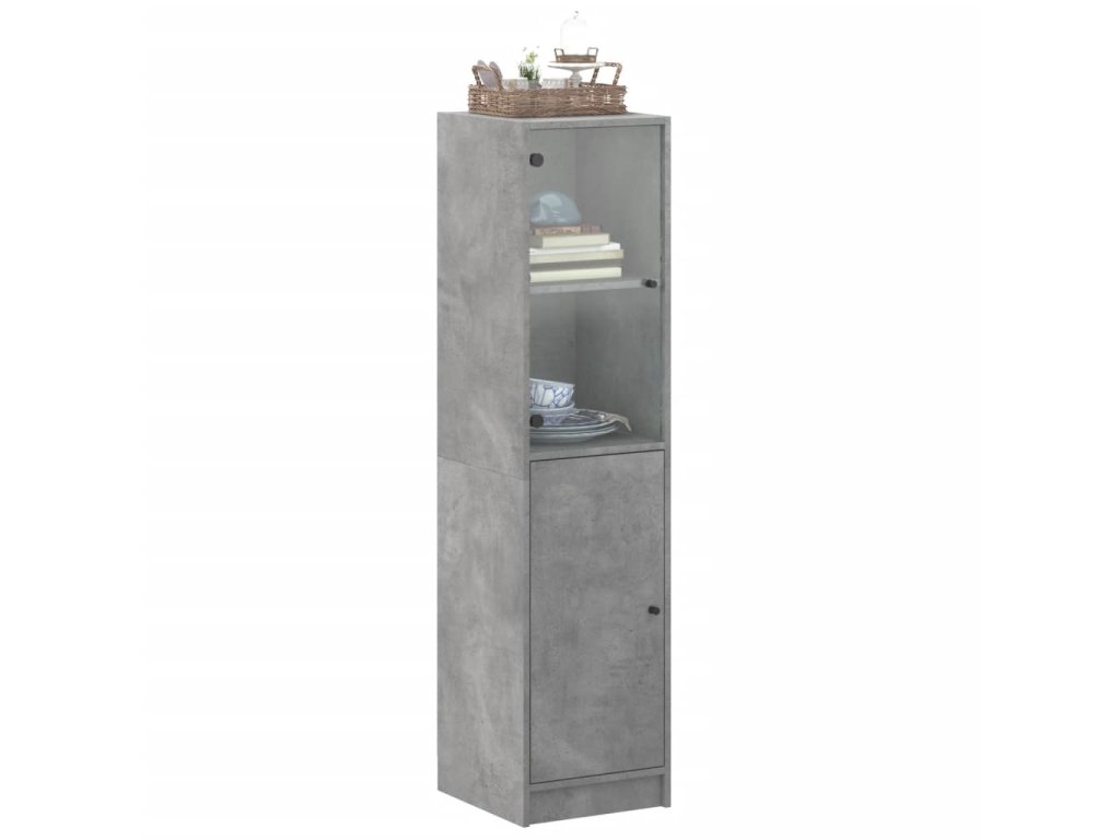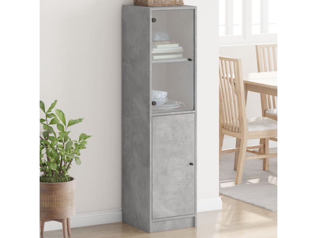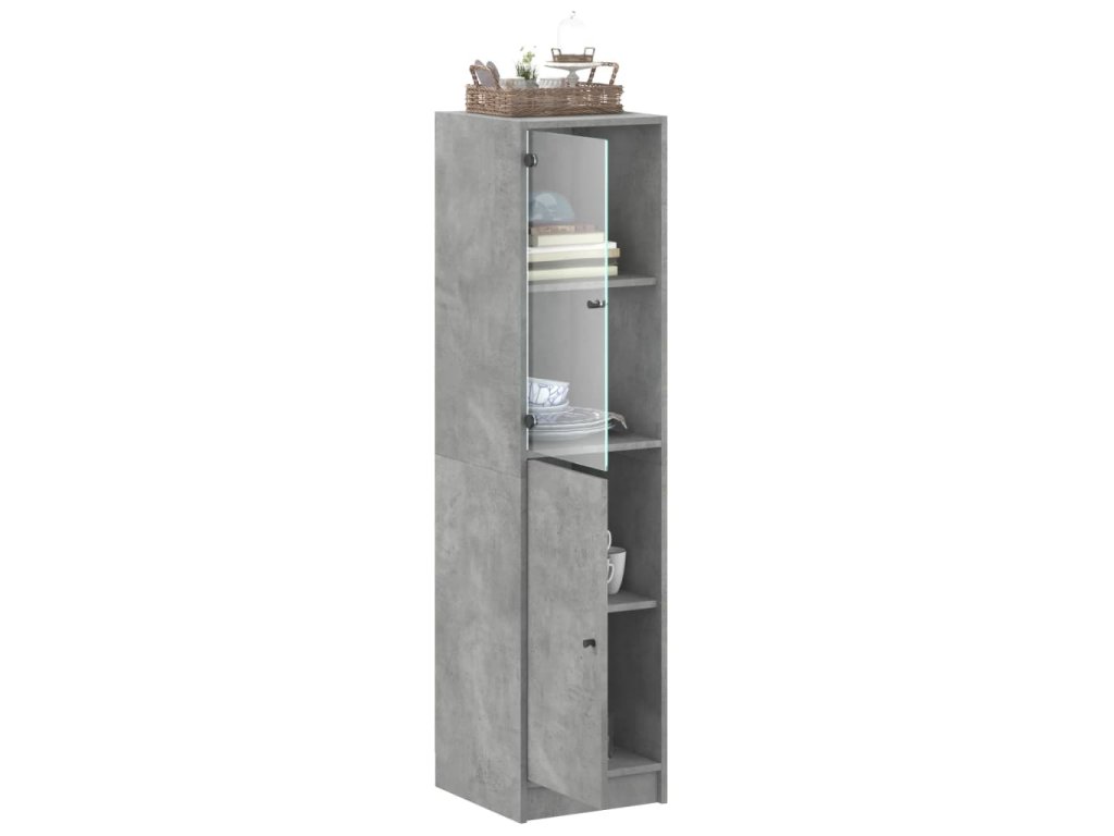 vidaXL Vysoká skrinka so sklenenými dverami betónovo sivá 35x37x142 cm