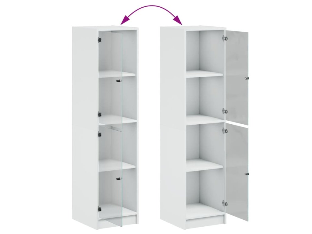 - Praktické sklenené dvere: Udržujte svoj priestor bez neporiadku tým, že za dvierkami skrinky ukryjete drobné predmety. Sklenené dvierka navyše umožňujú nahliadnuť do úložnej skrinky, aby ste mohli krásne vystaviť predmety.