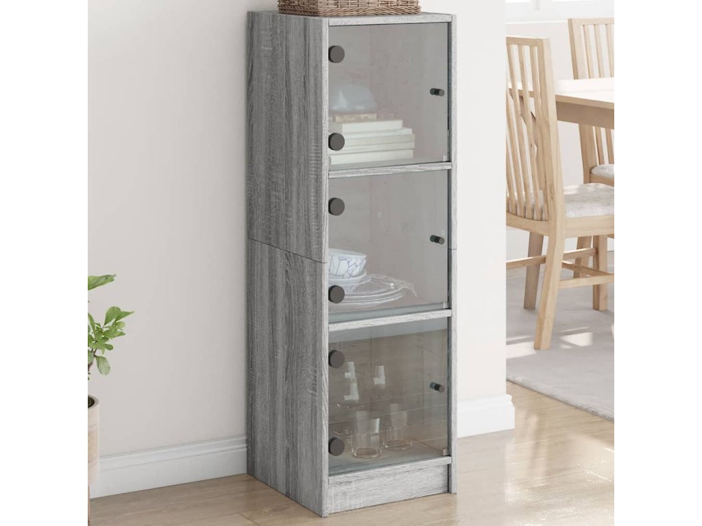 vidaXL Vysoká skrinka so sklenenými dvierkami sivá sonoma 35x37x109 cm