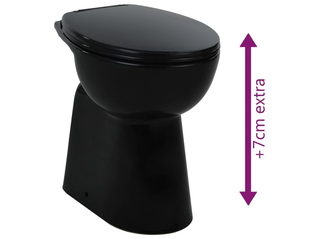 vidaXL Vysoké bezokrajové WC s jemným zatváraním o 7 cm vyššie keramické čierne