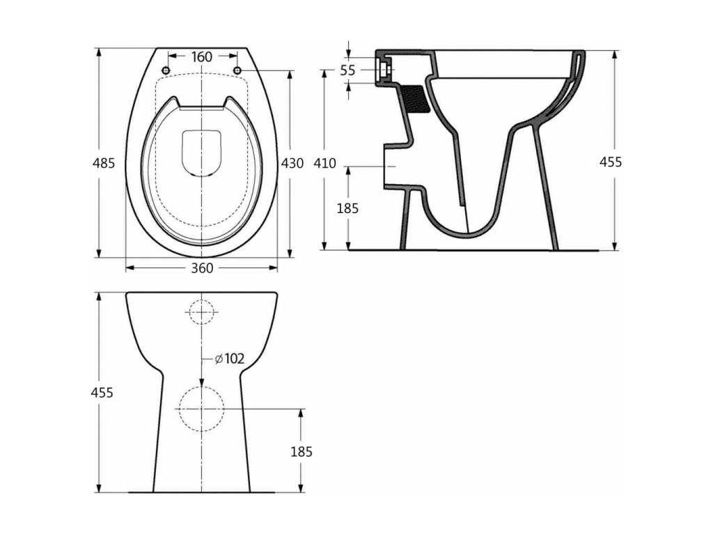 Sedadlo s automatickým mechanizmom mäkkého zatvárania zabraňuje pádu poklopu toalety. Zvýšená výška o 7 cm vám poskytne pohodlie pri sedení, najmä pre vysokých ľudí a seniorov. Toto WC sa ľahko montuje.