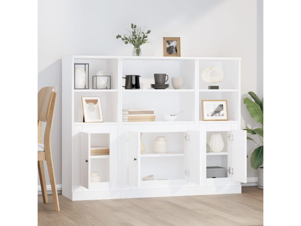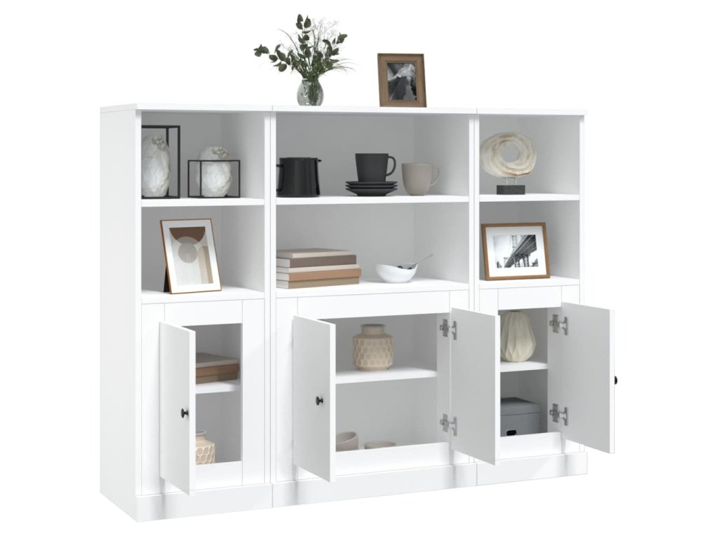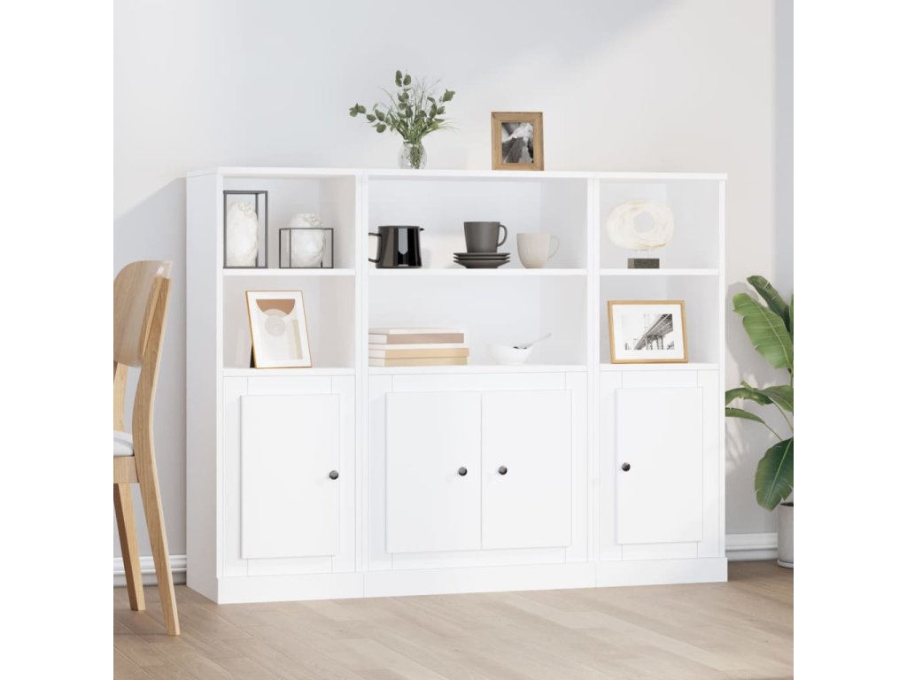 vidaXL Vysoké skrinky 3 ks biele kompozitné drevo