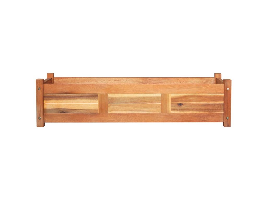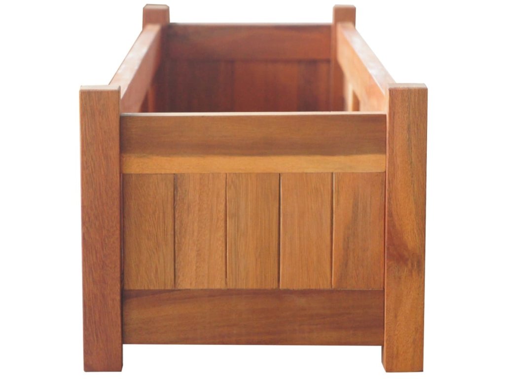 Kvetináč je vyrobený z akáciového dreva prvotriednej kvality, a tak je skutočne pevný a odolný. Kvetináč je okrem toho ošetrený olejovým náterom, ktorý drevu dodáva príjemnú farbu v rustikálnych tónoch. Spodná časť kvetináča pozostáva z latiek, a tak prepustí prebytočnú vodu, no zároveň zabráni tomu, aby sa spolu s ňou vysypala aj zemina.