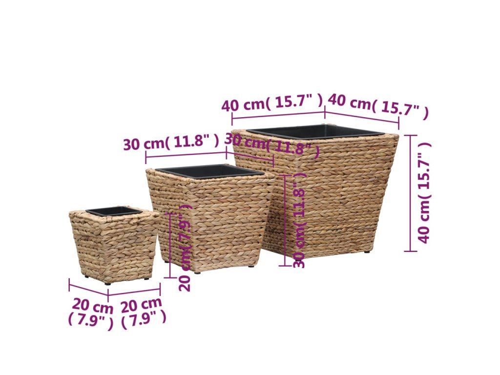 Pestujte a vystavujte svoje kvety a rastliny na obdiv v našej sade rustikálnych vyvýšených záhonov z vodného hyacintu! 3 kvetináče majú rôzne veľkosti, aby ste mohli naplno využiť svoju kreativitu a usporiadať si ich podľa svojich predstáv!
