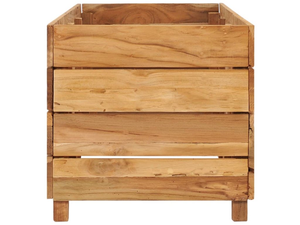 Kvetináč je vyrobený z recyklovaného tíkového dreva, a tak je skutočne pevný a trvácny. Vďaka krásnej textúre dreva je každý kvetináč jedinečný a trochu odlišný od ostatných. Štyri drevené nožičky v spodnej časti prinášajú potrebnú stabilitu. V spodnej časti kvetináča sa nachádza oceľový stojan na črepníky. Výrobok sa navyše jednoducho montuje.