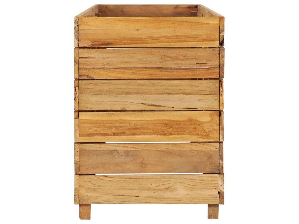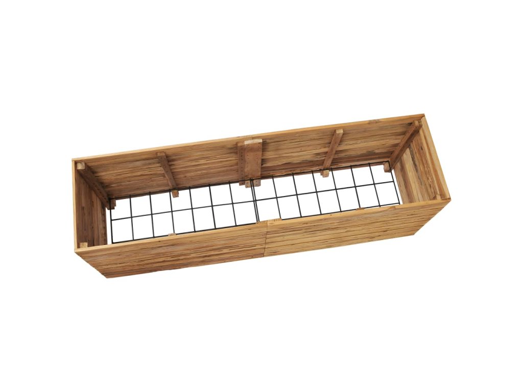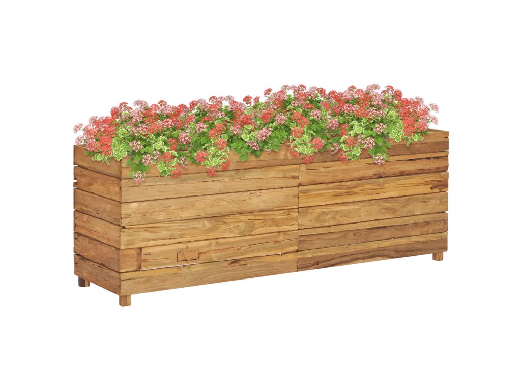 Kvetináč je vyrobený z recyklovaného tíkového dreva, a tak je skutočne pevný a trvácny. Vďaka krásnej textúre dreva je každý kvetináč jedinečný a trochu odlišný od ostatných. Štyri drevené nožičky v spodnej časti prinášajú potrebnú stabilitu. V spodnej časti kvetináča sa nachádza oceľový stojan na črepníky. Výrobok sa navyše jednoducho montuje.