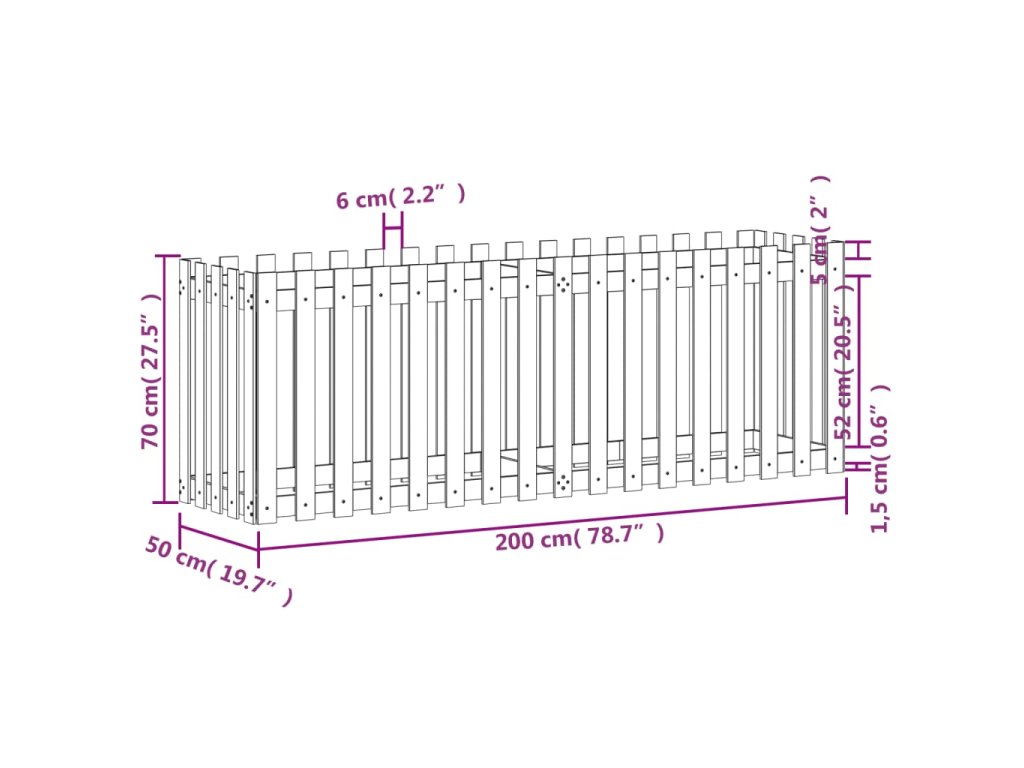 vidaXL Vyvýšený záhon s dizajnom plotu biely 200x50x70 cm mas.borovica