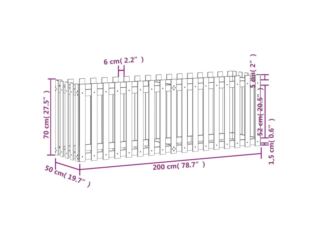 vidaXL Vyvýšený záhon s dizajnom plotu čierny 200x50x70 cm borovica