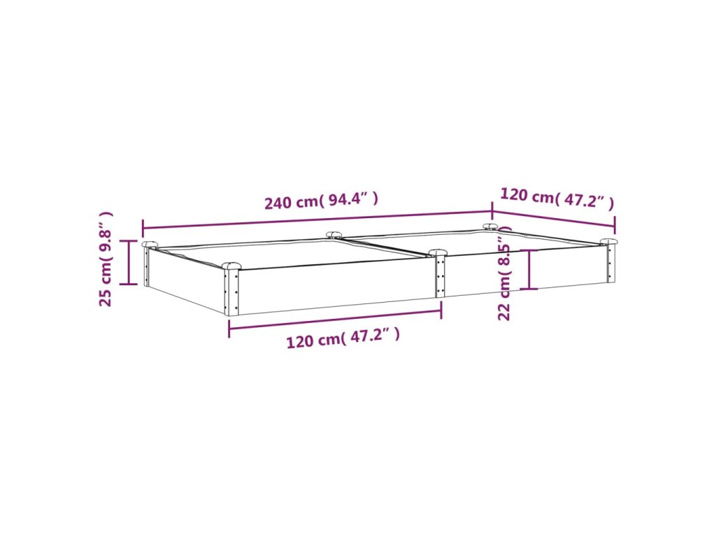 vidaXL Vyvýšený záhon s vložkou, sivý 240x120x25 cm, jedľový masív
