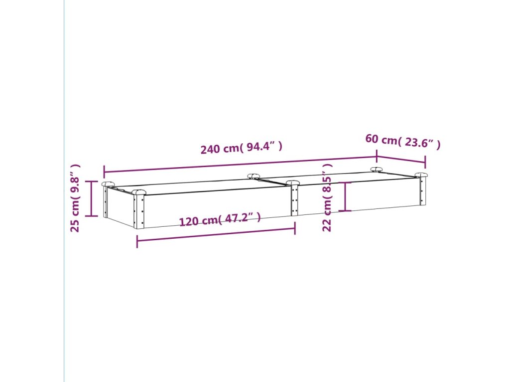 vidaXL Vyvýšený záhon s vložkou 240x60x25 cm, jedľový masív