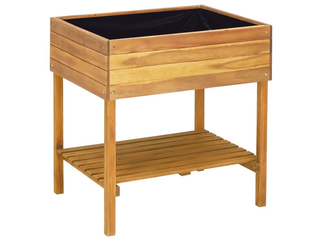 Tento drevený záhradný kvetináč s poličkou a PVC fóliou je ideálnou voľbou pre záhradkárov, ktorí chcú záhradu oživiť kvetmi alebo rastlinami.