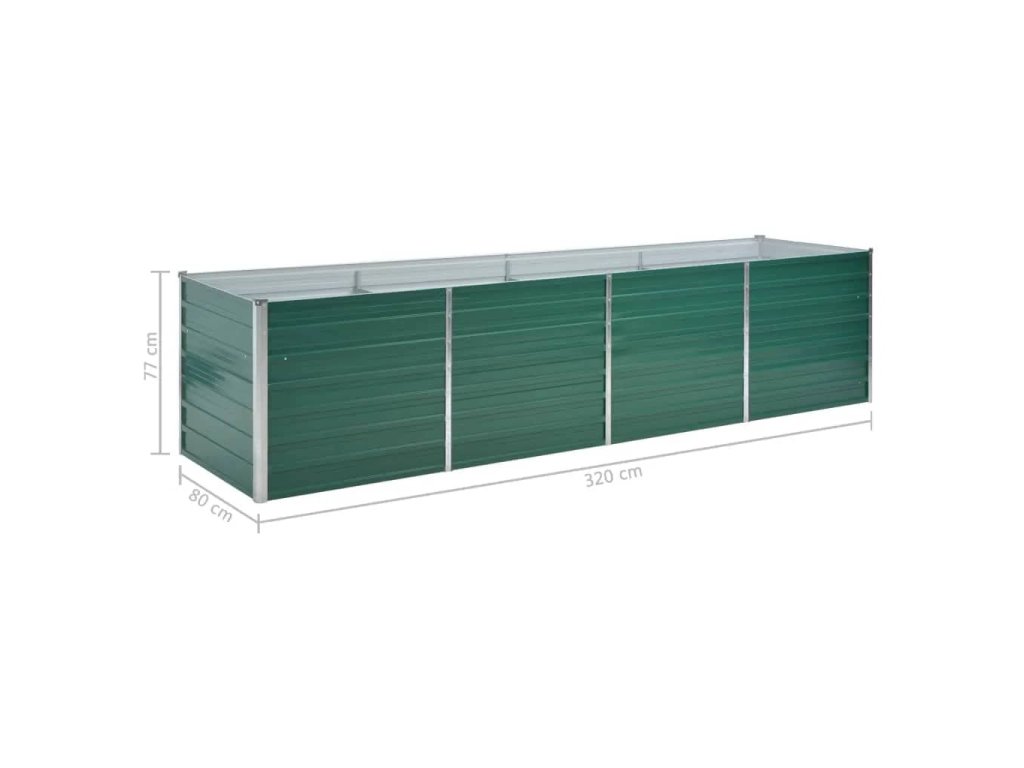 vidaXL Vyvýšený záhradný záhon, pozinkovaná oceľ 320x80x77 cm, zelený