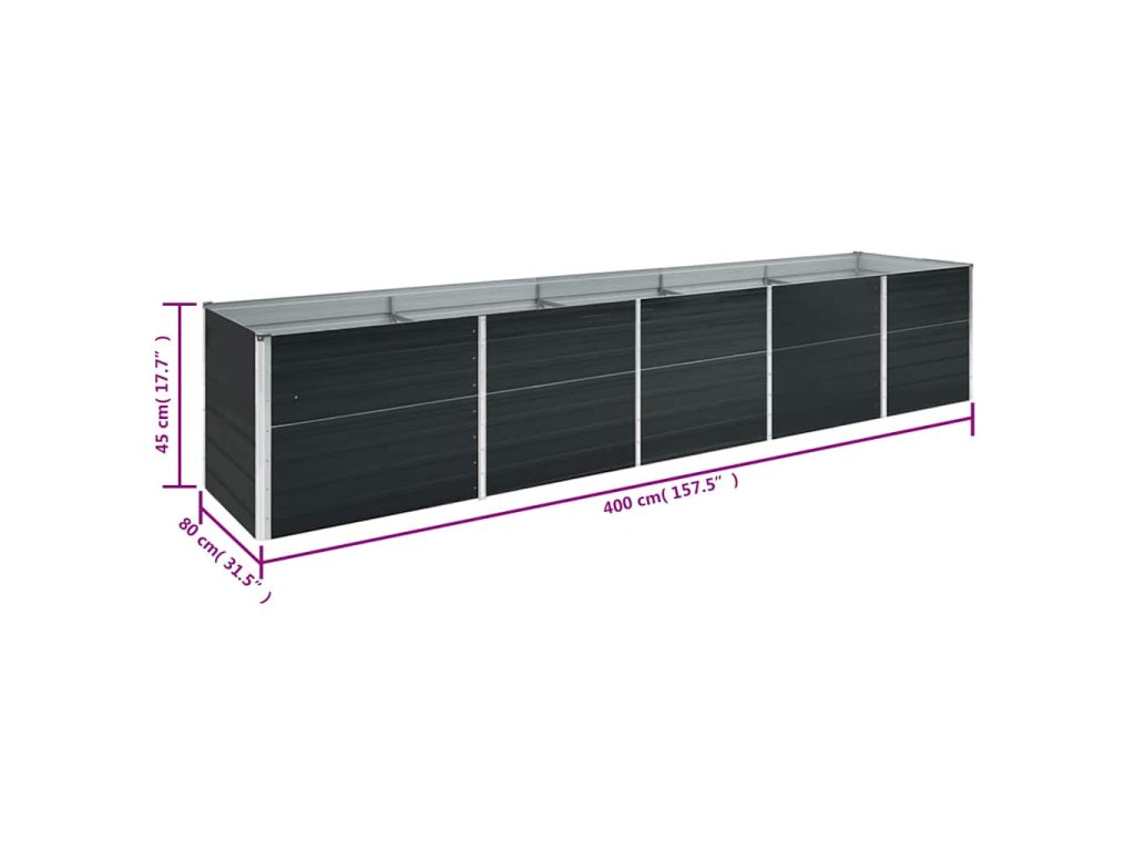 vidaXL Vyvýšený záhradný záhon, pozinkovaná oceľ 400x80x45cm, antracit