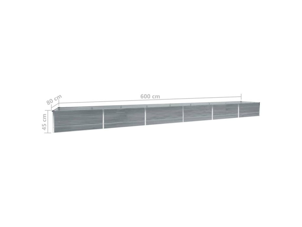 vidaXL Vyvýšený záhradný záhon, pozinkovaná oceľ 600x80x45 cm, sivý