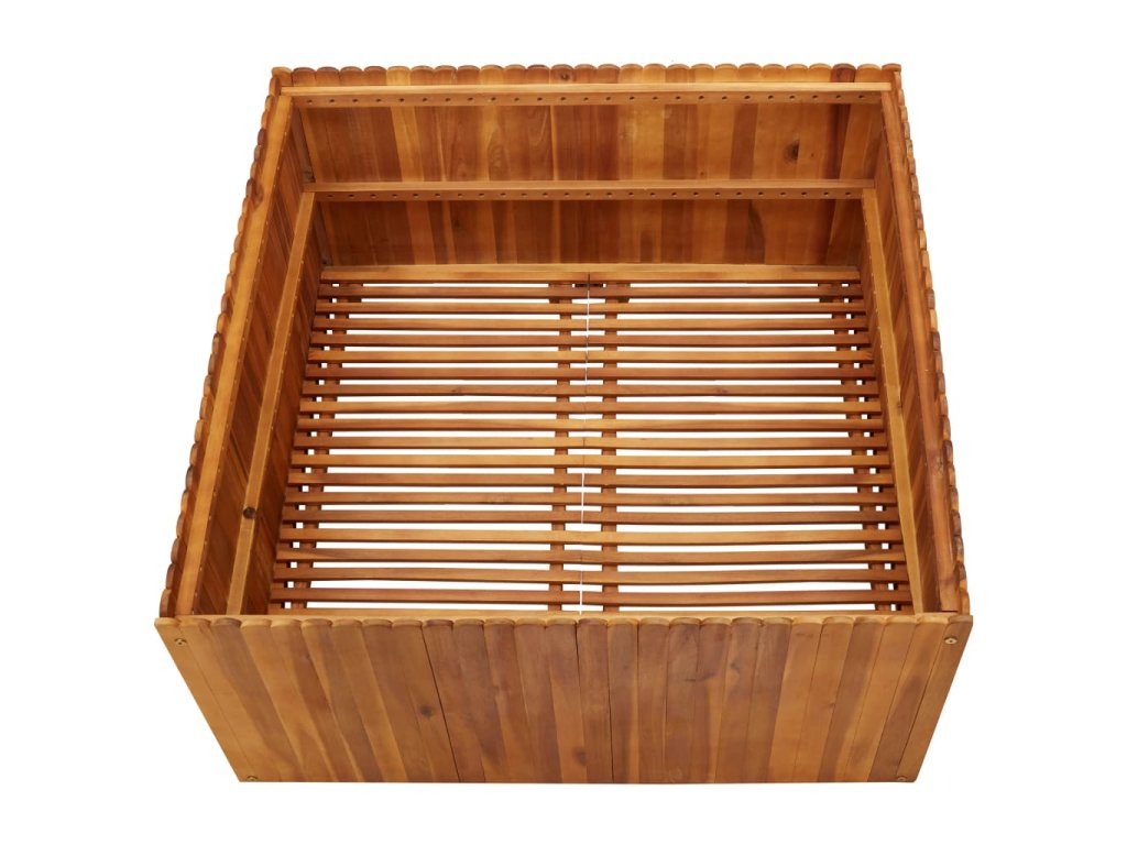 Kvetináč má nenápadný rustikálny dizajn a do vašich vonkajších priestorov vnesie nádych prírodnej atmosféry. Kvetináč je vyrobený z pevného a robustného akáciového dreva, vďaka čomu je odolný voči poveternostným vplyvom a vhodný do exteriéru. Spodná časť kvetináča pozostáva z latiek, a tak prepustí prebytočnú vodu, no zároveň zabráni tomu, aby sa spolu s ňou vysypala aj zemina.