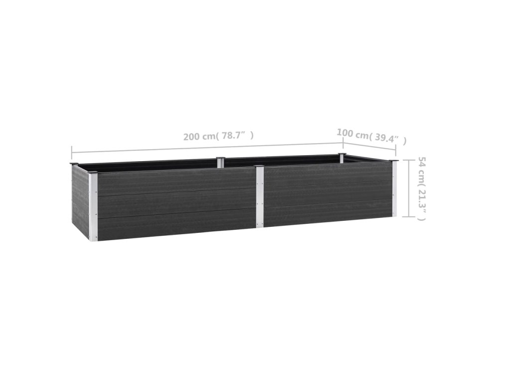 vidaXL Vyvýšený záhradný záhon 200x100x54 cm WPC sivý