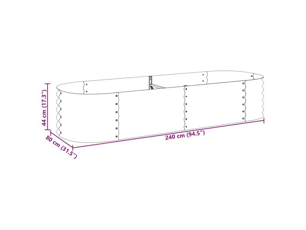 vidaXL Vyvýšený záhradný záhon 240x80x44 cm, pozinkovaná oceľ, sivý