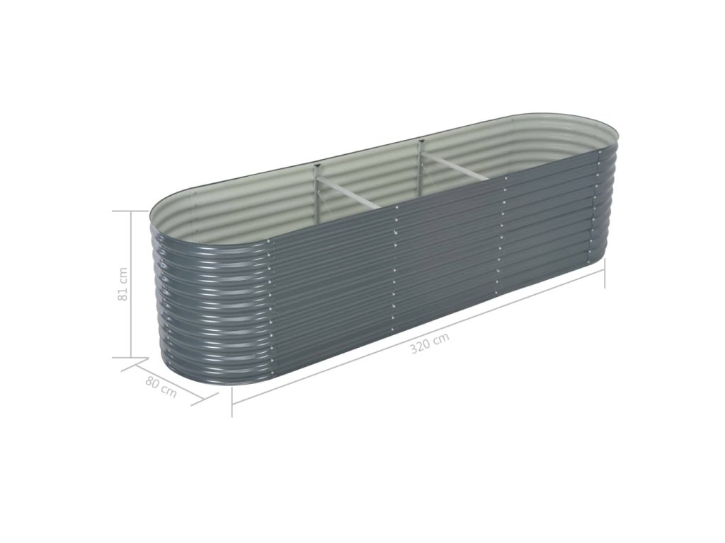 vidaXL Vyvýšený záhradný záhon 320x80x81 cm, pozinkovaná oceľ, sivý