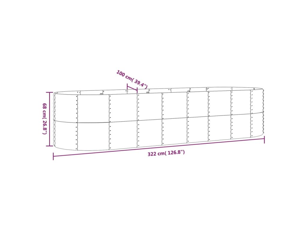 vidaXL Vyvýšený záhradný záhon práškovaná oceľ 322x100x68 cm sivý
