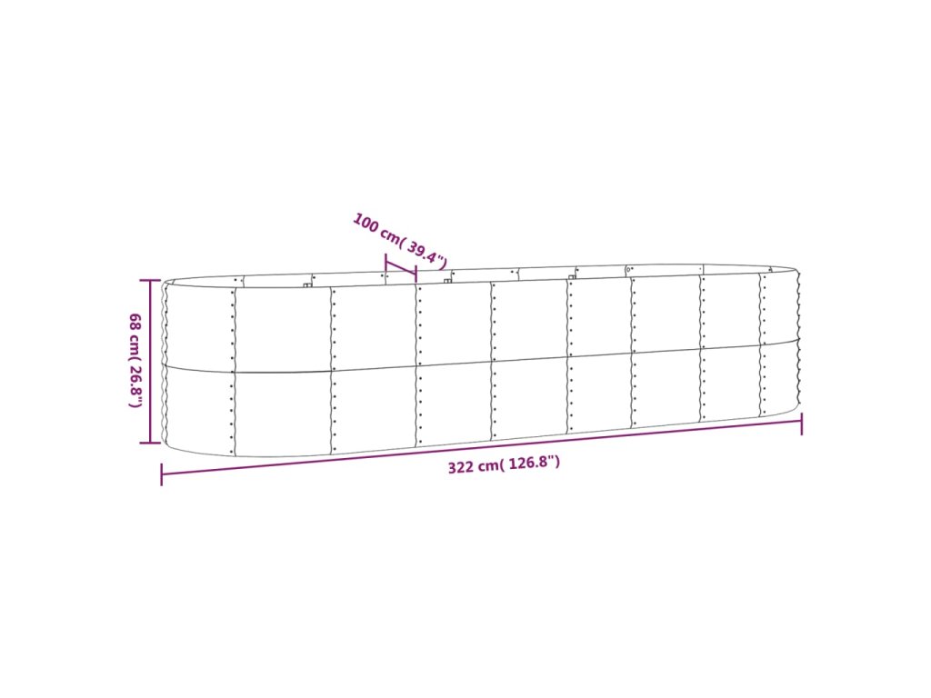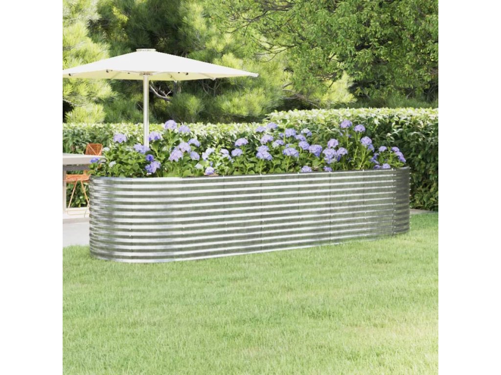 vidaXL Vyvýšený záhradný záhon práškovaná oceľ 322x100x68cm strieborný