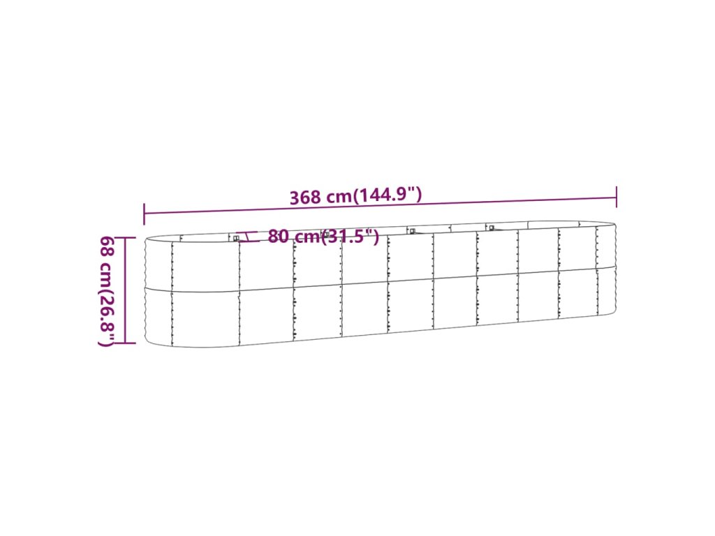 vidaXL Vyvýšený záhradný záhon práškovaná oceľ 368x80x68 cm zelený