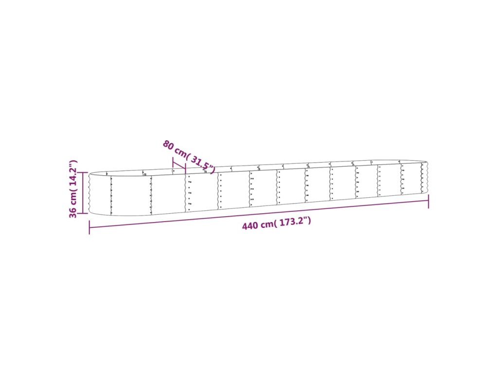 vidaXL Vyvýšený záhradný záhon práškovaná oceľ 440x80x36 cm sivý