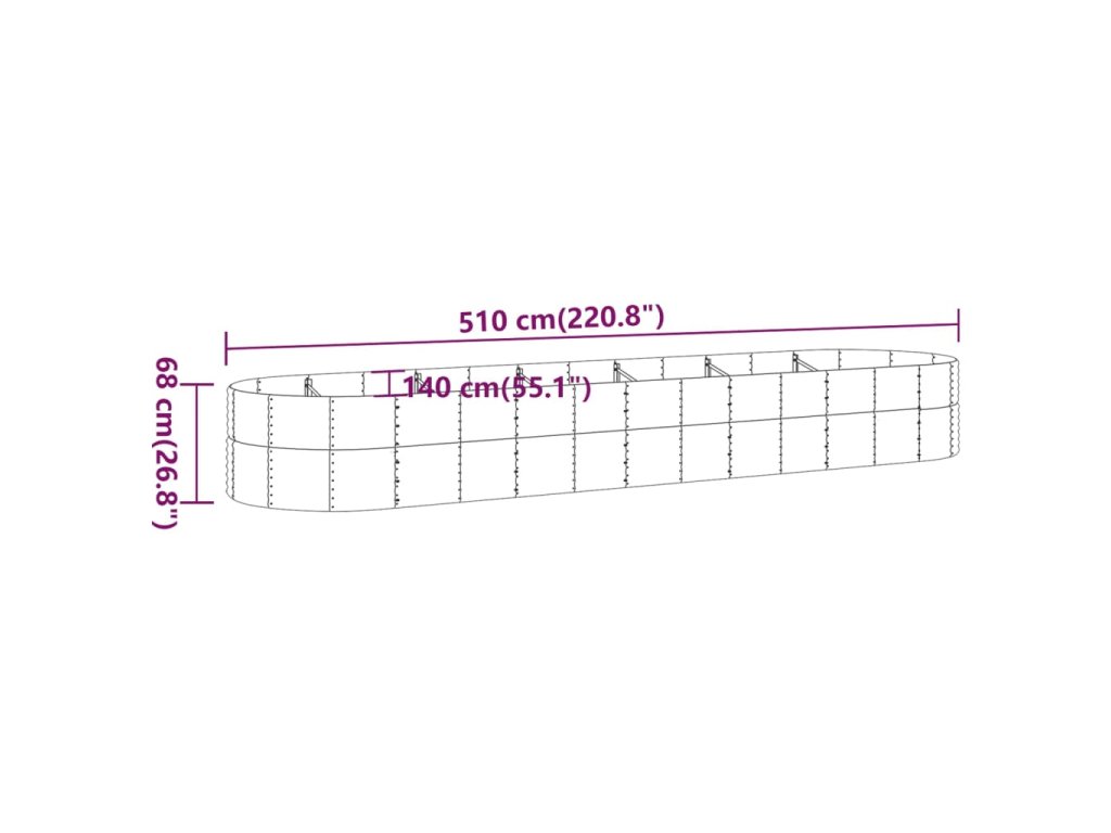 vidaXL Vyvýšený záhradný záhon práškovaná oceľ 510x140x68cm strieborný