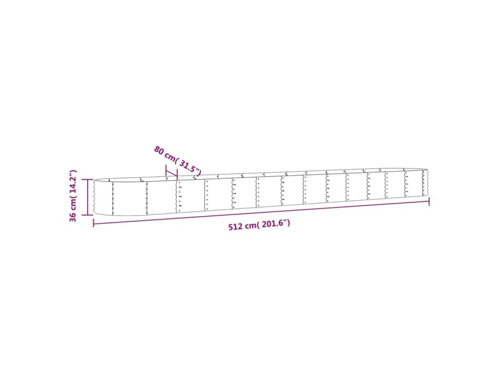 vidaXL Vyvýšený záhradný záhon práškovaná oceľ 512x80x36 cm hnedý
