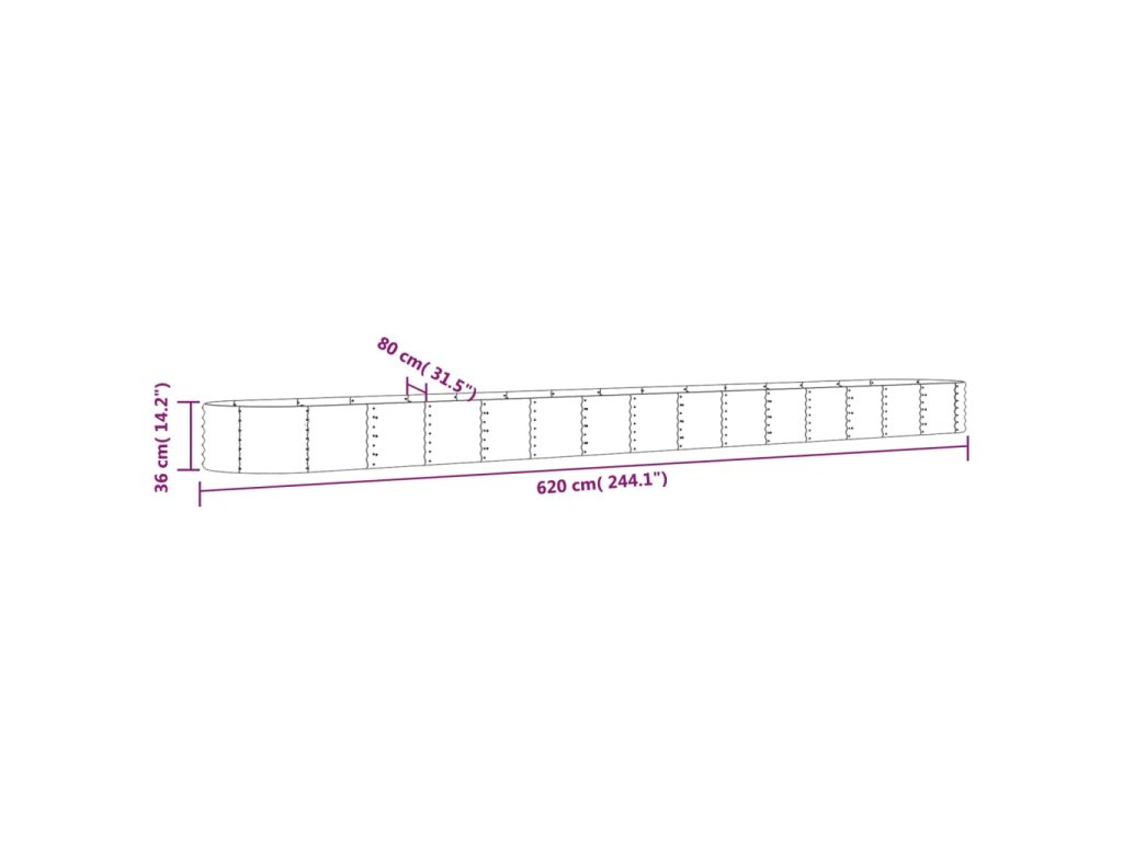 vidaXL Vyvýšený záhradný záhon práškovaná oceľ 620x80x36 cm sivý