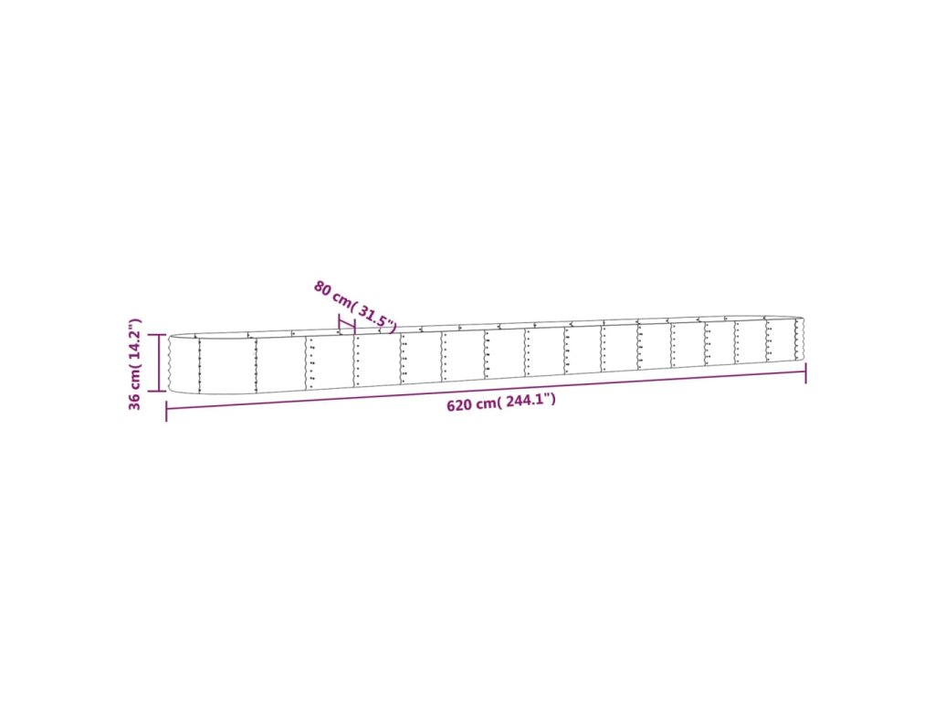 vidaXL Vyvýšený záhradný záhon práškovaná oceľ 620x80x36 cm zelený