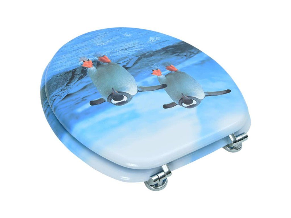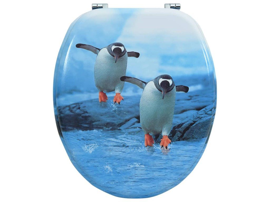 vidaXL WC sedadlo s vrchnákom MDF dizajn s tučniakmi