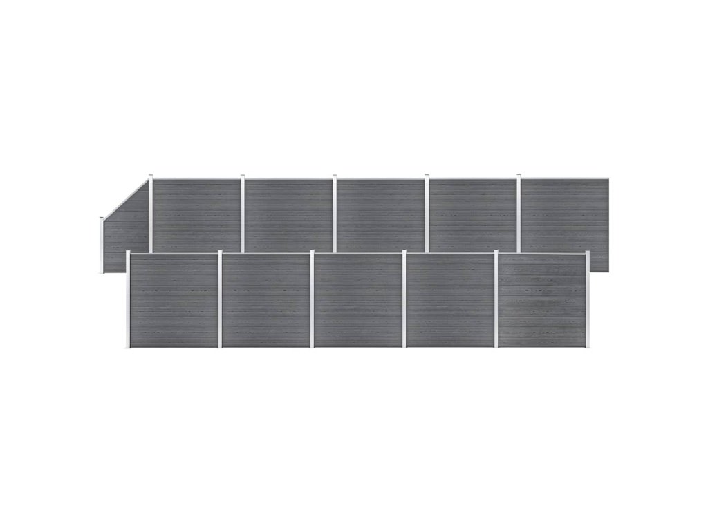 vidaXL WPC plot, 10 štvorcových + 1 zošikmený diel 1830x186 cm, sivý