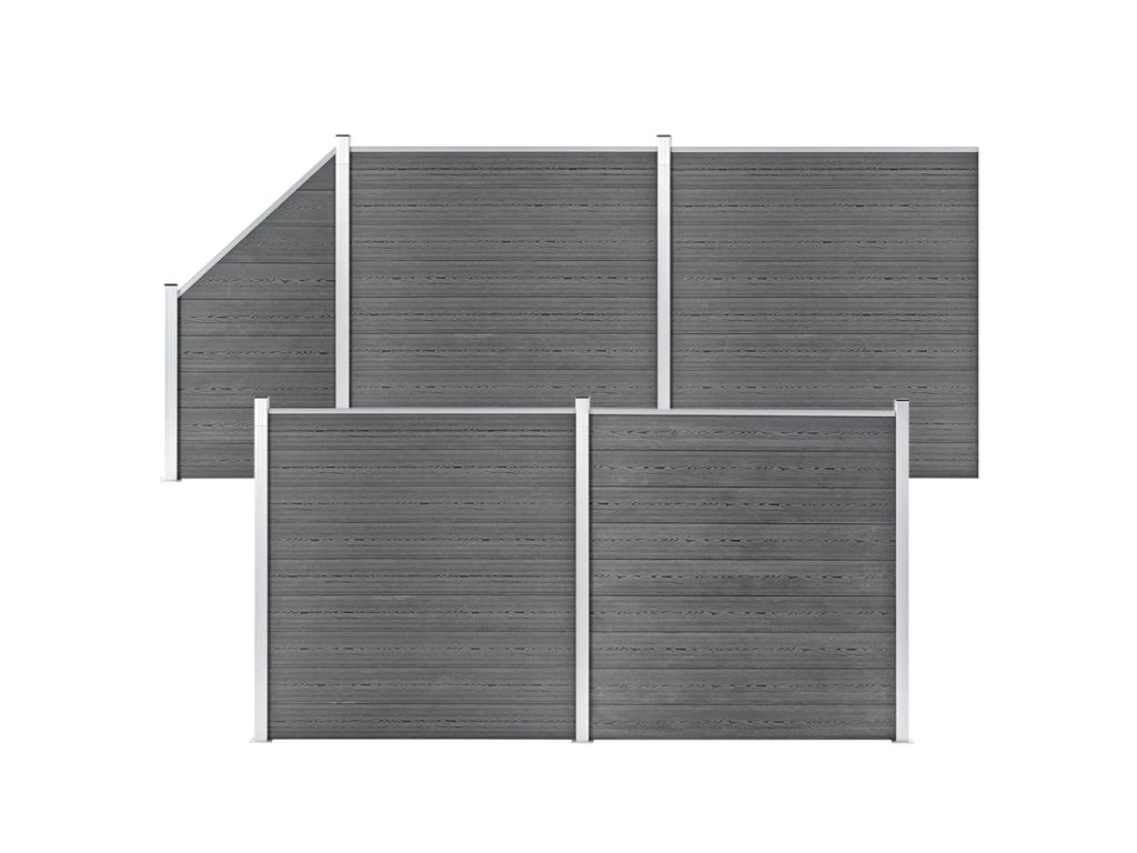 vidaXL WPC plot, 4 štvorcové + 1 zošikmený diel 792x186 cm, sivý
