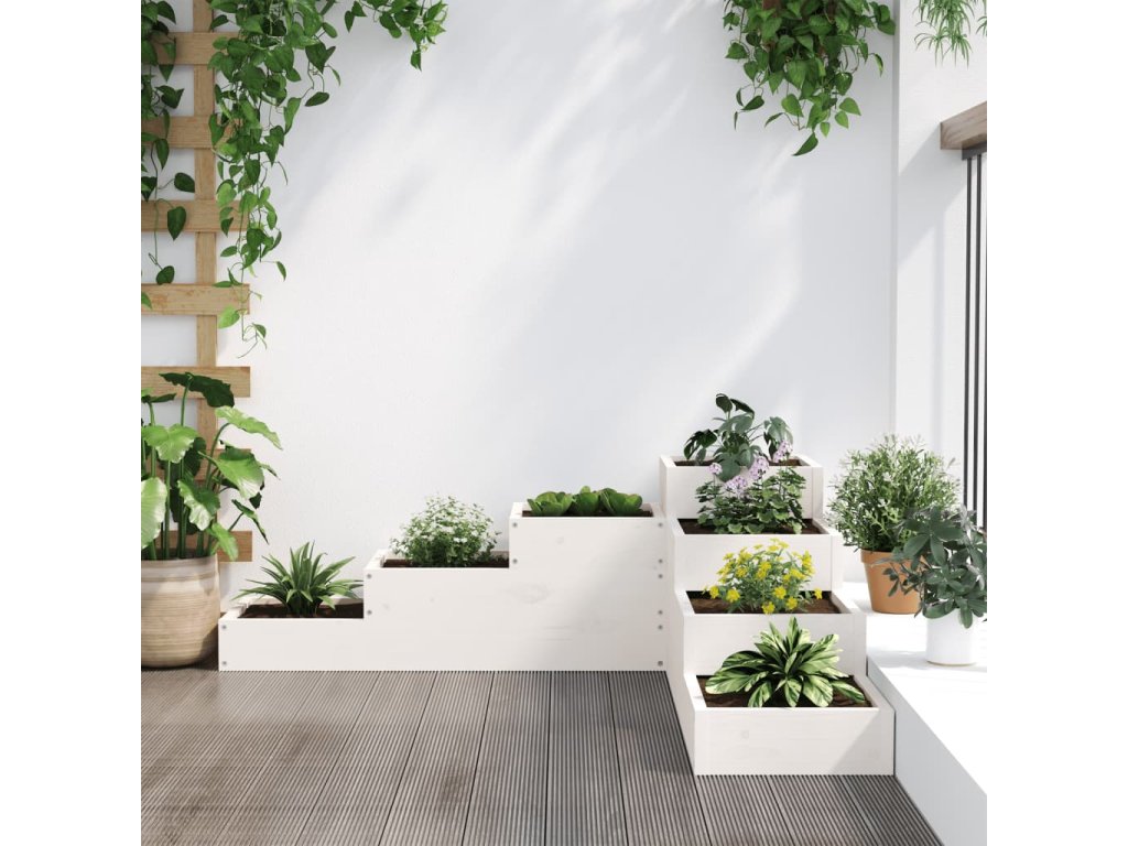 vidaXL Záhr. kvetináč 4-posch. 106x104,5x36 cm biely masívna borovica