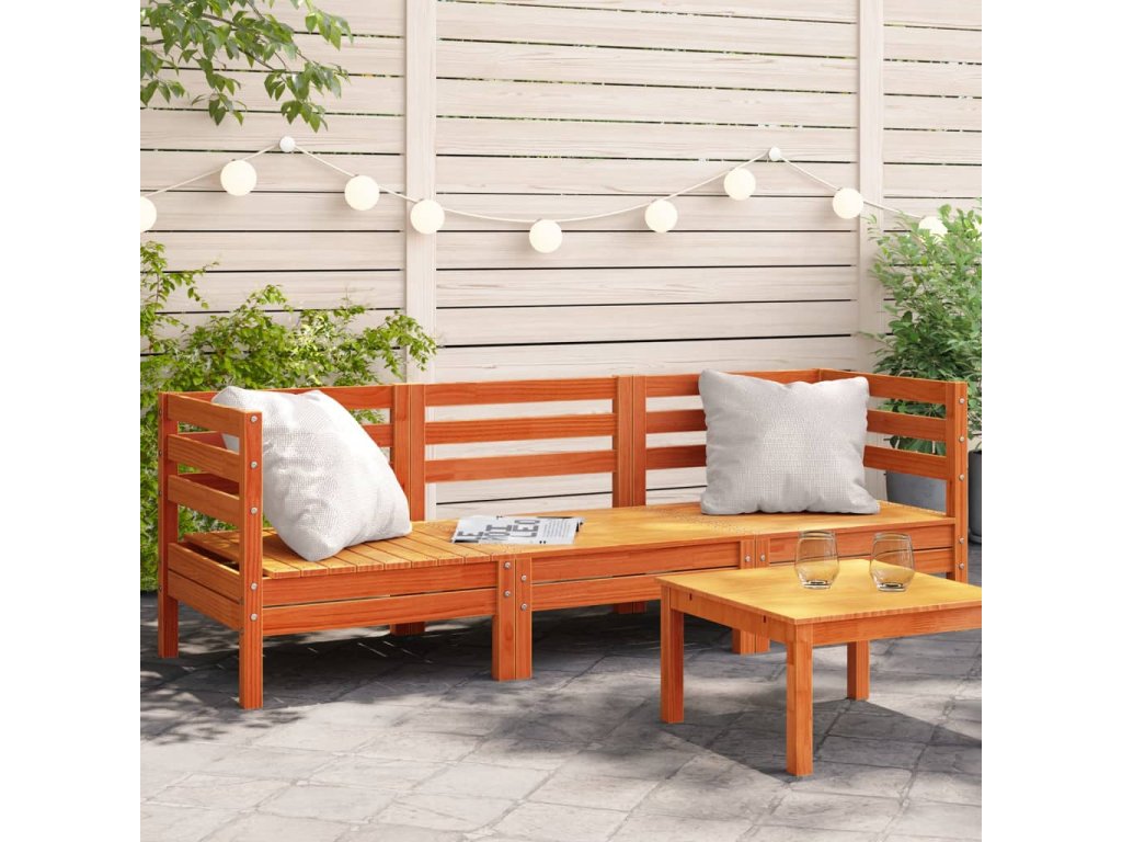 vidaXL Záhr. pohovka 3-miestna vosková hnedá borovicový masív