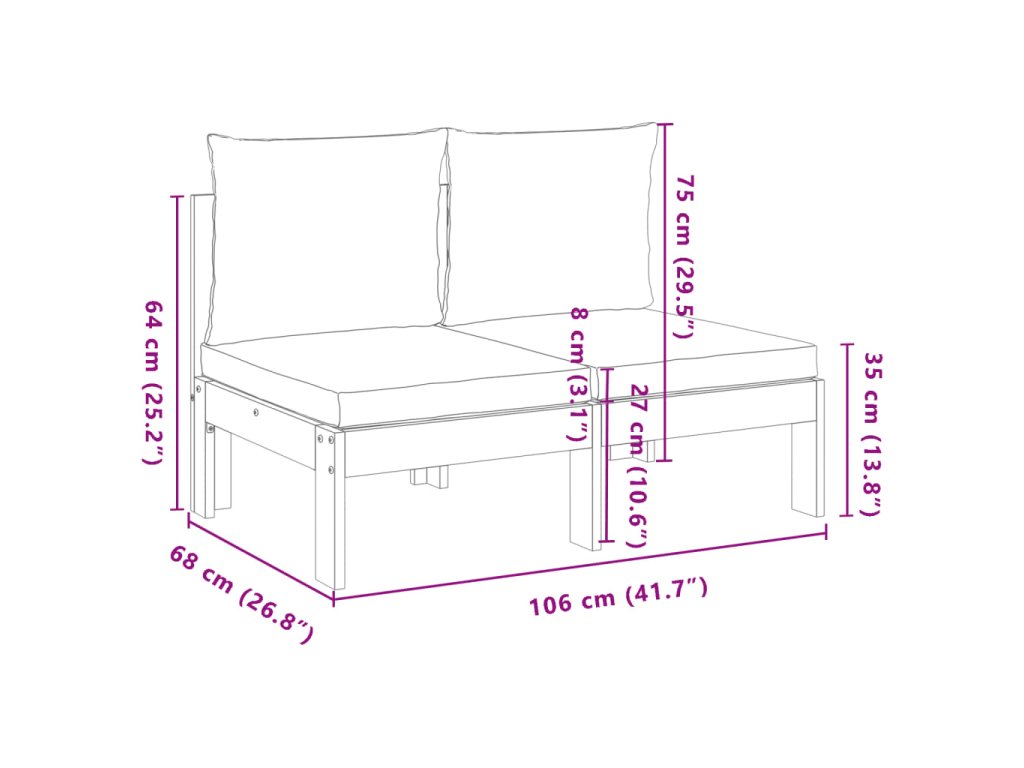 vidaXL Záhr. pohovka bez podrúčok s vankúšmi 2-miestna masívna akácia